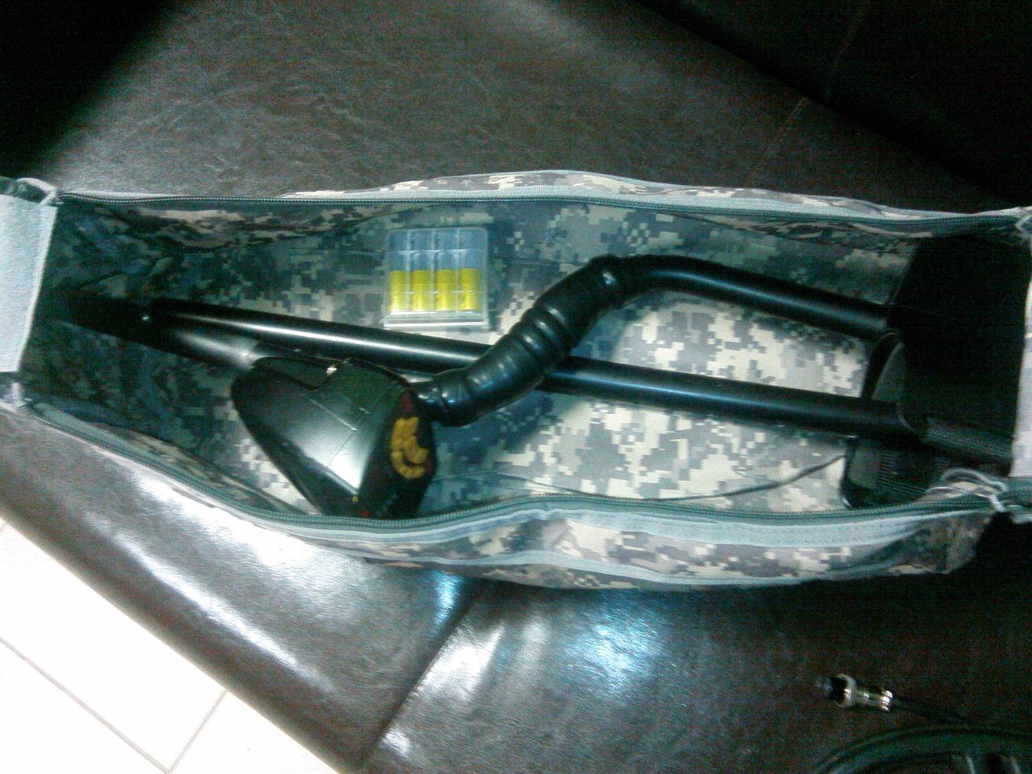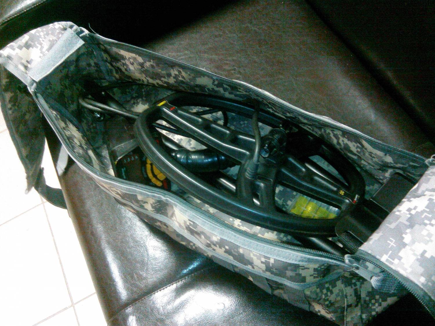 | Всем привет. Вот, приобрёл такую плечевую сумку из Китая, вместо рюкзака Garrett который шёл в комплекте с МД. Выбирал по критериям: максимальная компактность, минимальные размеры (но с учётом размещения в нём МД), ещё очень расцветка понравилась. В итоге получил всё, что и хотел. Качество нормальное. Посмотрим на сколько его хватит в условиях эксплуатации. Дово-о-о-оле-ен... как слон.))))