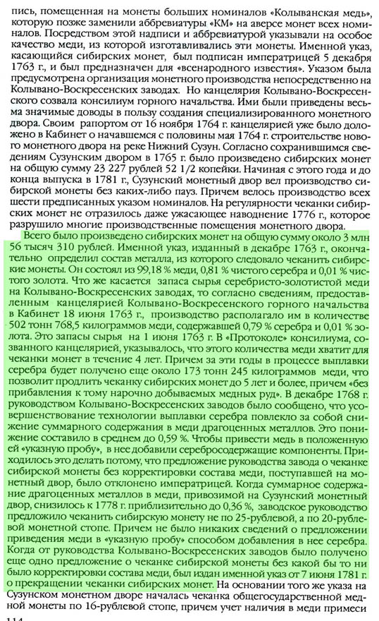 | Цитата (Gomel1972) Кроме сибирки всё можно в топку, Gomel1972, "сибирки" при равных условиях всегда сохраном лучше, т.к. медь из которых они чеканились содержала драгметаллы. Цитата (Прохорова Н.В. Монеты и банкноты России) Именной указ, изданный в декабре 1763 г., окончательно определил состав металла, из которого следовало чеканить сибирские монеты. Он состоял из 99,18 % меди, 0,81 % чистого серебра и 0,01 % чистого золота.