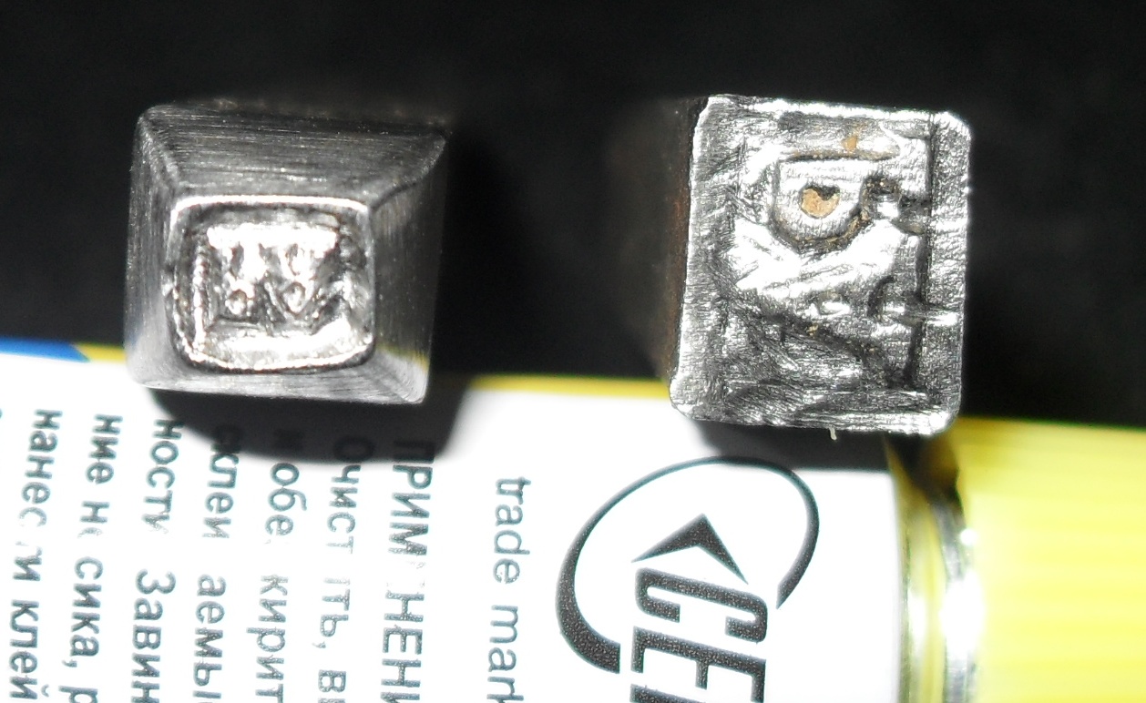 | А я сегодня решился пойти на героический для себя шаг и сделать Именники- для тех кто не в курсе это чеканы с инициалами. В данном случае моими. Не представляя как и что выглядит я сделал из стальной шпонки сначала большой Именник, ну а потом решился на меньший по размерус буквами 2мм в высоту. Итог теперь я имею собственное клеймо