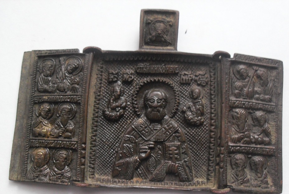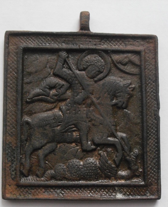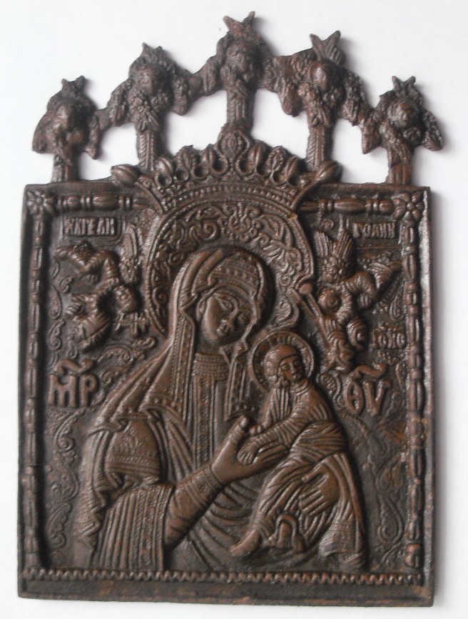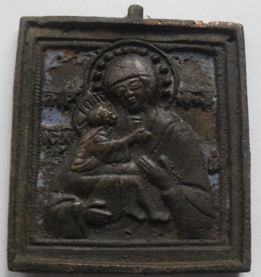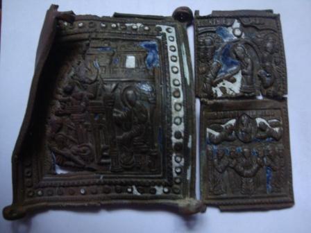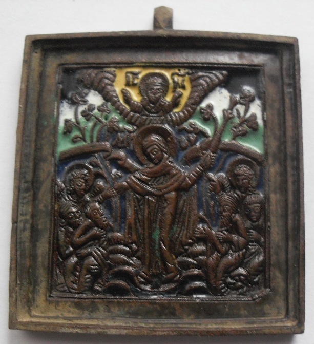 | А мне вот такой шедеврик попался Правда трактор его подправил. Называется "Рождество Пресвятой Богородицы" как я понял . Только вот теперь голову ломаю кто его финифтью украсил? Во всемирной паутине что-то цветных таких не нашел .